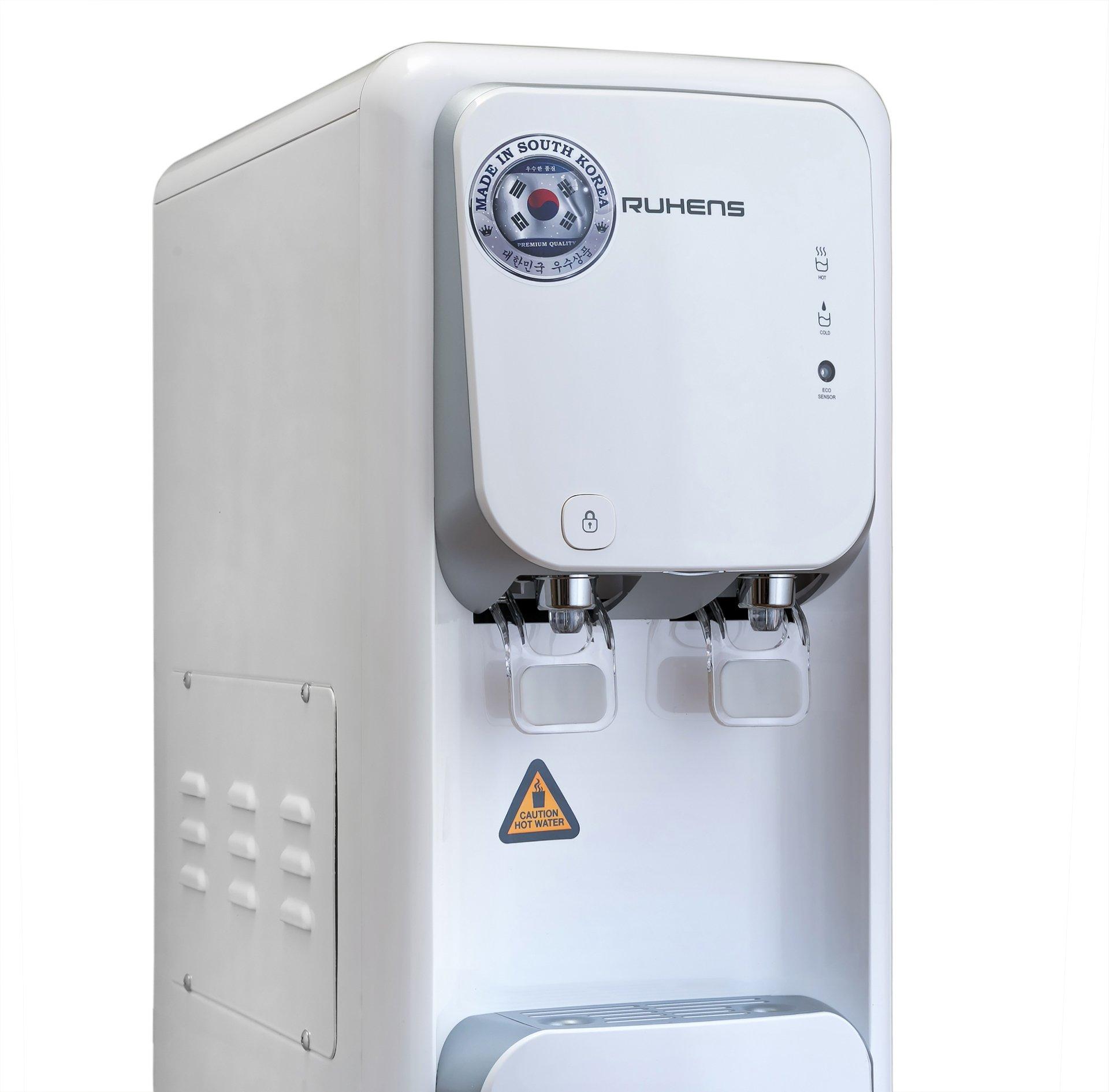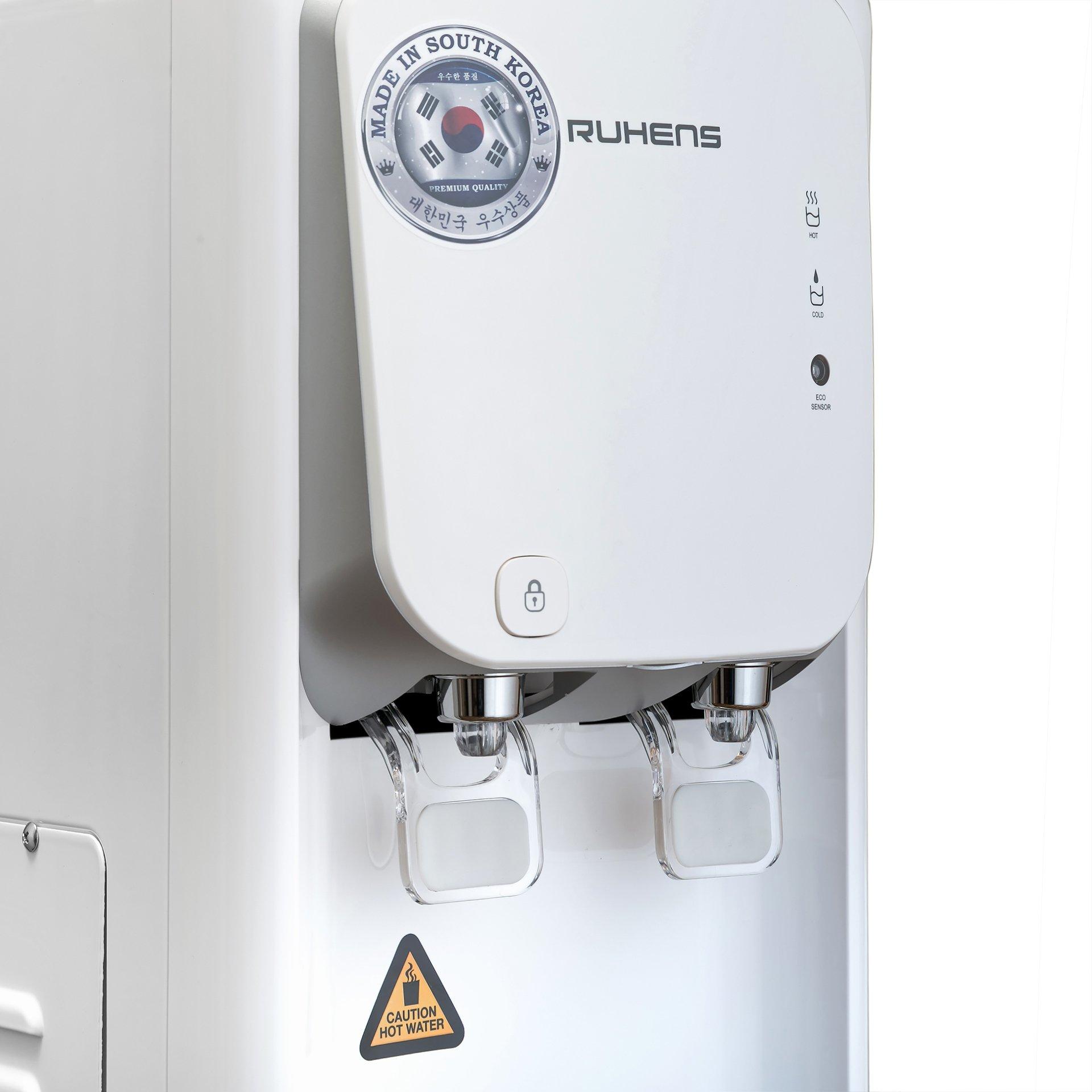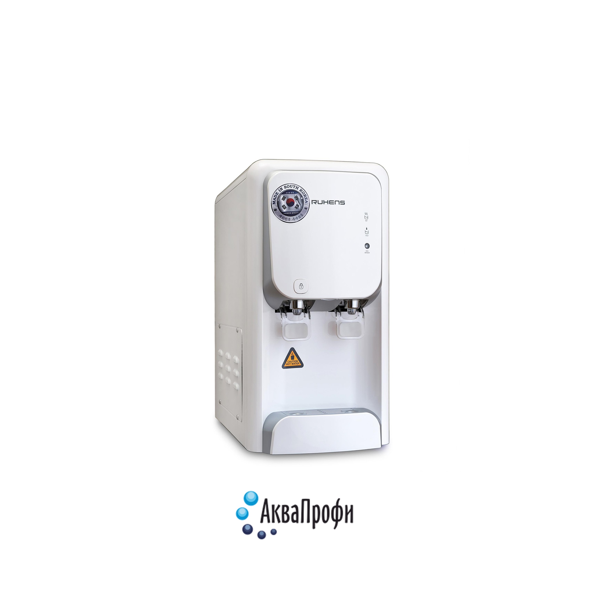 Настольный пурифайер, энергосберегающая система ECO. Съемная нижняя передняя панель и поддон для капель и устройство безопасности горячей воды.